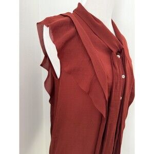 LOFT Ann Taylor Ruffle Front Sleeveless Burnt Orange Button up Blouse Top Sz XS