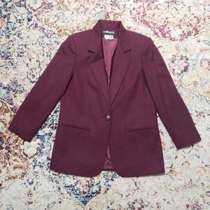 90s Vintage Sag Harbor 100% Wool Woolmark Burgundy Blazer Single Button Lined Lightly Structured Shoulders Size 4 Petite