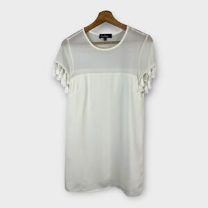 Lulus Womens size Small Iced Latte White Shift Dress Tassel Sheer Mesh ad02358