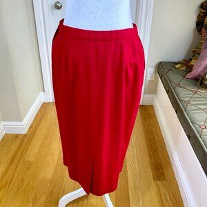 Beautiful high quality red wool pencil skirt, double button side close, pockets, small pleats, classic for the Holidays