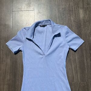 Zara Purple Ribbed Polo Collared V-neck Dress