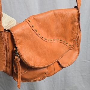 LUCKY BRAND Y2K 100% Leather Tangerine And Taupe Crossbody Bag