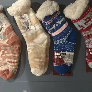 Cozy pink sock booties with grippers and sherpa lining. Perfect for lounging.