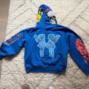 Screen printed Hand graphic on right hood, screen printed DJ Screw graphic on left hood.