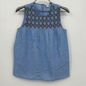 J. Crew Factory Blue Linen Blend Embroidered Sleeveless Blouse