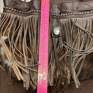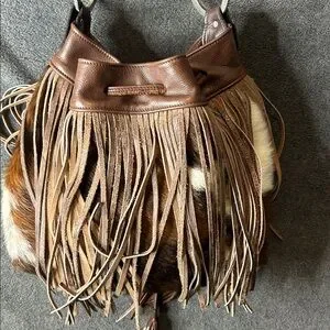 Antique silver studs. Soft leather fringe on cowhide. Luxurious interior with 2 pockets. All studs and rhinestones in place. Amazing like new condition