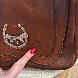 Discover the durable leather of this brown women's bag, featuring a stylish design perfect for any horse lover !