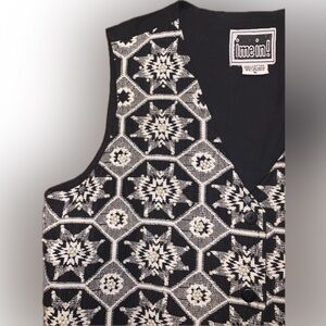 Vintage Pearl Beaded Black White Tapestry Grandpa Vest Star Festive M