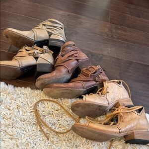 Price firm. FREEBIRD Lot of three pair booties all size 9, all preowned, see pics, freebird not eligible for a buy two get one free special I have but I will bundle if you buy more than one lot of freebirds and I have a bunch!