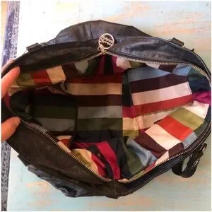 Coach Poppy Legacy Rocker Leather Satchel Stripe Satin Interior
