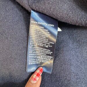 This Tommy Icons Wool Blend Jacket is a sophisticated piece that merges preppy heritage with modern tailoring. Crafted in a rich navy hue, has elegant silver crest buttons, and subtle Tommy Hilfiger detailing; tricolor stripe accent under the collar and an embroidered crest logo on the chest. Perfect for layering during cold-weather outings or dressing up your winter wardrobe with a touch of refined edge.