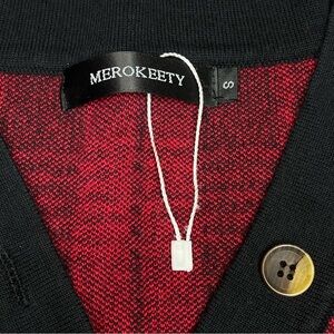 NWOT MEROKEETY Sm Women Long Sleeve V Neck Cotton Button Knit Sweater Pull Over