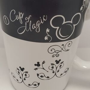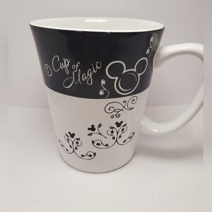 Disney Parks Mickey Mouse One Cup Of Magic Ceramic Coffee Mug Black White Floral