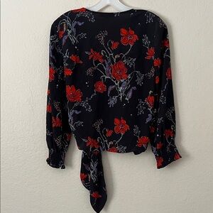 Madewell Women's Silk Smocked Sleeve Floral Wrap Top Size S