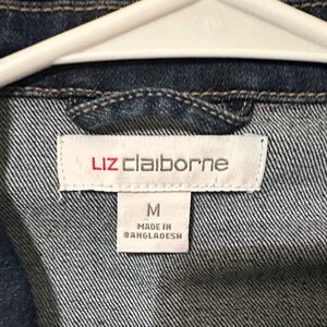 Stylish Liz Claiborne denim jacket. Dark blue color. Ideal for everyday wear.
