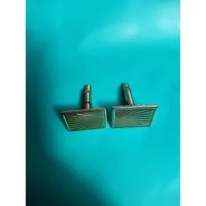 Sophisticated vintage gold-tone cufflinks featuring a clean, classic design that complements any dress shirt or tuxedo. Mid-century styling with smooth polish and durable construction — understated elegance that never goes out of style.