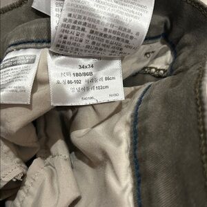 Sleek dark green chinos by Levi's. Ideal for versatile styling. Comfortable and modern fit. 34x34
