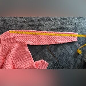 Classic LANDS’ END Drifter cable knit sweater in a soft coral. Beautifully crafted from 100% cotton with a timeless cable pattern front and back. Crew neckline, ribbed cuffs, and hem for a comfortable fit.