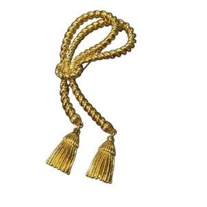 Rope Lasso With Tassel Dangles Vintage Gold Tone Brooch Pin. 3 1/4” long, 1 1/4” wide. Good condition.
