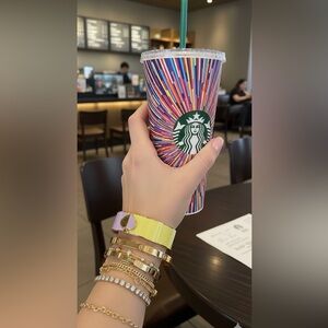 Elegant gold bracelet with a touch of purple, perfect for any occasion.