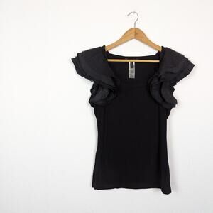 BCBGMaxAzria Black Mirabelle Ruffle Shoulder Top Size S