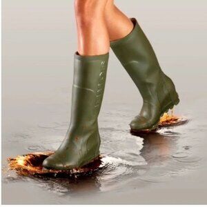 SOREL Rain Boots Green Joan Tall Wedge