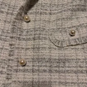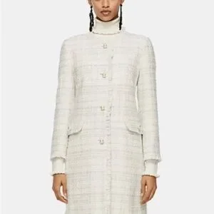 Chic white tweed coat with button details. Perfect for a sophisticated look.