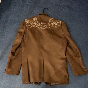 Elevate your style with this brown embroidered men's blazer. Perfect for formal occasions or adding a touch of sophistication to your wardrobe.