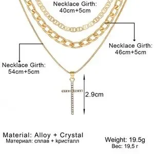 Enhance your style with this elegant gold layered necklace set. Perfect for any occasion, this set features a stunning cross pendant and chic chain design. Elevate your jewelry collection with this timeless piece.