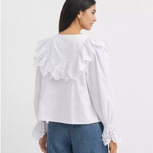 LOFT White Eyelet Broderie Ruffle Blouse Size XS