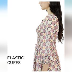 Sixdo Smocked Kaleidoscope Print Midi Dress Size Large NWT Bust 36 In