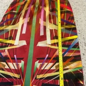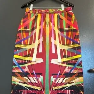 Escada size 36 (S) NWOT Silk “Ode to LA” I could never wear it- i am just not a size 2 pencil skirt offers a sleek and sophisticated silhouette, perfect for professional settings or elegant evenings. Crafted with precision, its tailored fit accentuates the figure, ultra lux- with a super bright modern addition