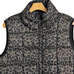 Gap Puffer Longline Vest NEW Size S Cheetah Animal Print Black and Olive