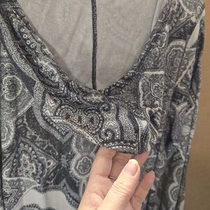 CJ Banks Patterned Sparkly Long Sleeve Top With Gems And Hood Size 1X 107