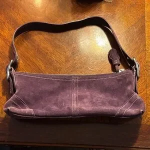 Coach Y2K Hamptons Demi Baguette Shoulder Bag purple Suede Vintage Used