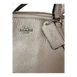 Stylish Coach Metalic Pebbled Leather in Gold color. Features dual handles and detachable strap. Perfect for versatile use.