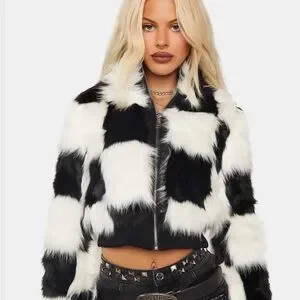 Azalea Wang/ Dolls Kill jacket in mint condition. Stay stylish and warm with this chic black and white faux fur jacket. Perfect for adding a touch of elegance to any outfit.