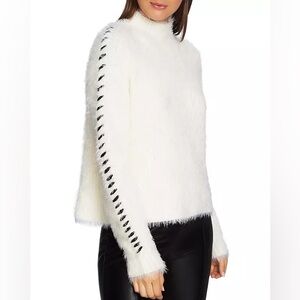 1. STATE Whipstitch Eyelash Knit Sweater Off White Fuzzy Fluffy Chic Size M