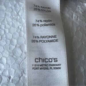 Upgrade your wardrobe with this classic Chico’s Black sweater.It’s made from a comfortable rayon blend,making it lightweight and breathable.The sweater features three decorative silver buttons on each sleeve cuff,adding a subtle touch of elegance.It’s a timeless versatile piece perfect for any season.Size 3 is (equivalent to XL/16,according to Chico’s chart)Pre-owned in good condition