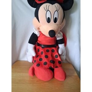 The product is a large Minnie Mouse plush toy, part of the Disney franchise. This collectible item features the beloved character Minnie Mouse from Disney's iconic series. The plush toy is officially licensed by Disney and is perfect for fans of the franchise or collectors of Disney memorabilia. It is a cuddly and huggable representation of the iconic character, making it a fun and nostalgic addition to any Disney collection. She is 26 inches tall.