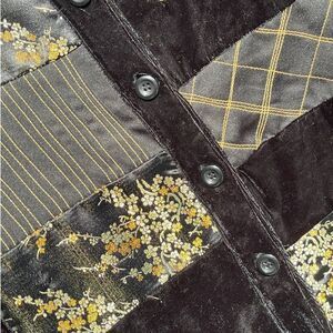 Robert Louis Black Gold Button Down Blouse Size M