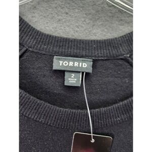 The NWT TORRID Sequin Heart Burst Black Everyday Pullover Sweater in Size 2X is a cozy and soft sweater perfect for everyday wear. This sweater features a heart pattern with sequin accents, a crew neck, and long sleeves. Made from a blend of polyester, nylon, and rayon, this tight-knit sweater is lightweight, stretchy, and breathable, making it suitable for various occasions such as travel, parties, casual outings, and business meetings. The relaxed fit and plus size availability cater to a comfortable and stylish look for the winter, fall, and spring seasons.