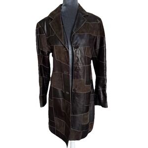 Elements by Vakko Coat M Brown Leather Patchwork Hippie Boho Chic Retro 70s