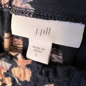 J Jill Blouse Size Large Navy Floral Print 3/4 Sleeve Ruffle Cottagecore Ditsy