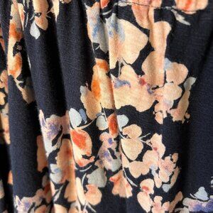 - J. Jill Navy Floral Print 3/4 Sleeve Ruffle Off the Shoulder Blouse