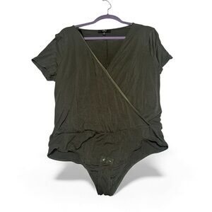 Lulus Marren Olive Green Short Sleeve Surplice Bodysuit - Size XL