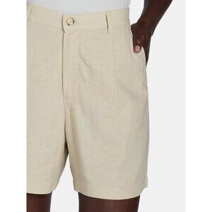 The Time and Tru Women's Linen Blend Shorts in size XL (16-18) with a mid-rise feature a 5" inseam, making them perfect for the summer and spring seasons. These classic beige shorts are made from a comfortable rayon fabric blend, with a button and zipper closure. The relaxed fit and flat front design add a casual touch, while the slash pocket adds functionality. Easy to care for with machine washable instructions, these mid-rise shorts are a versatile addition to any woman's wardrobe.