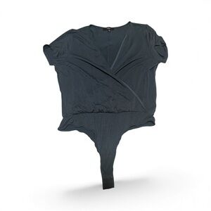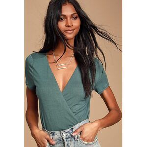 NWOT Lulus Marren Slate Blue Short Sleeve Surplice Bodysuit - Size XL
