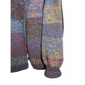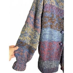 70's Cozy Hand-Knit Super Chunky Oversized Wool Multi-Colored Sweater Coat OS