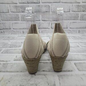 Great pre owned condition. Charleston Shoe Co espadrille wedges in the Prosecco colorway (white and linen color stripes). Women's size 8